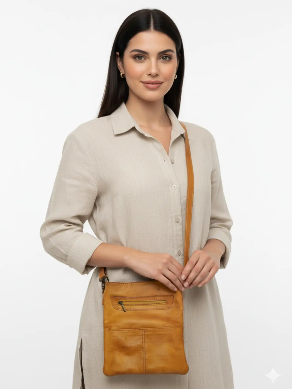 Cartera de cuero natural fabricada a mano en Marruecos.