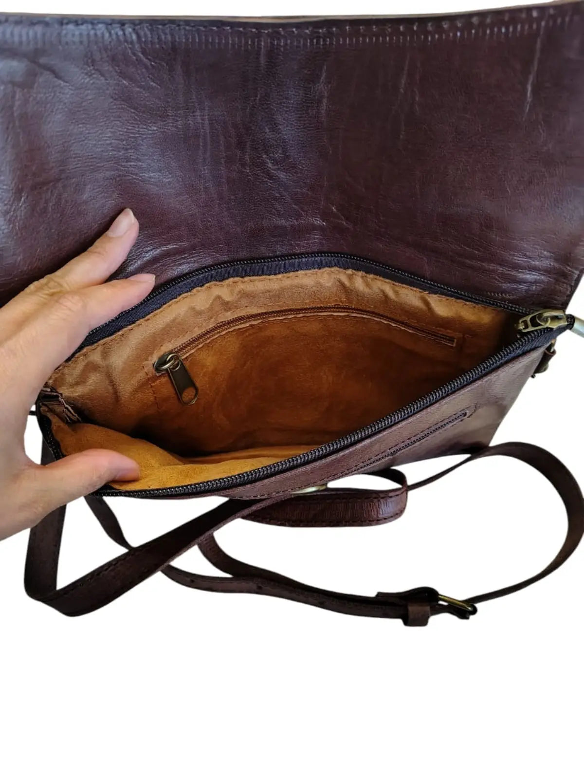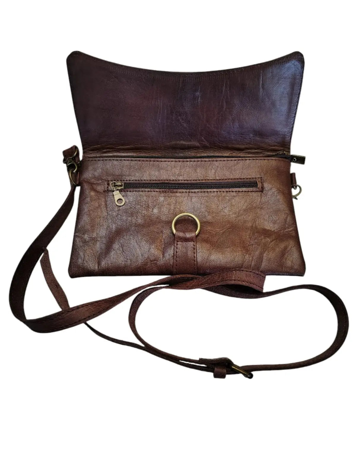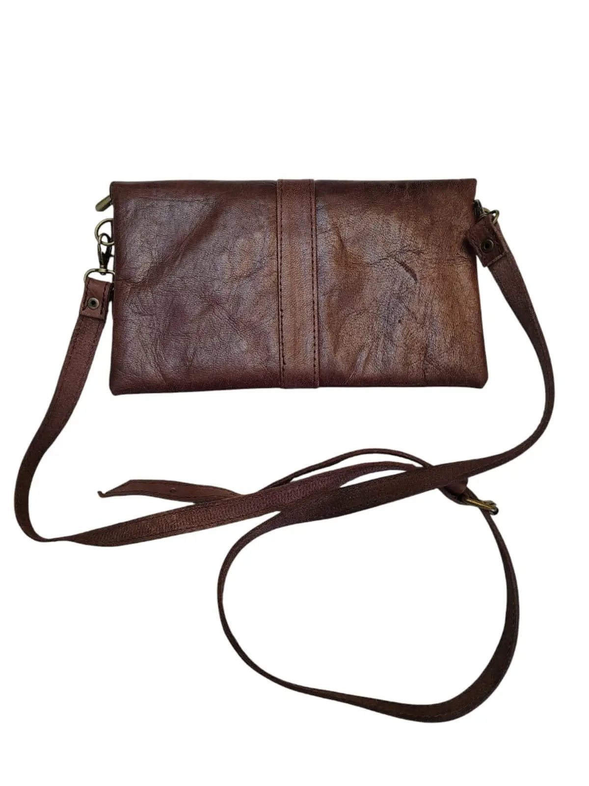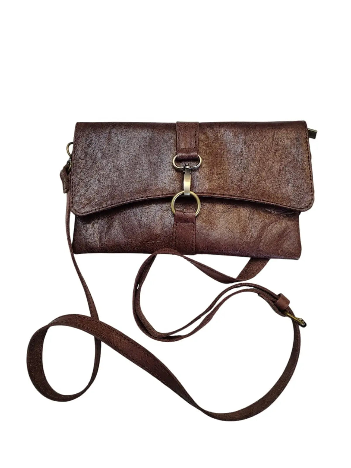 Bandolera de cuero natural color café moro - Samira