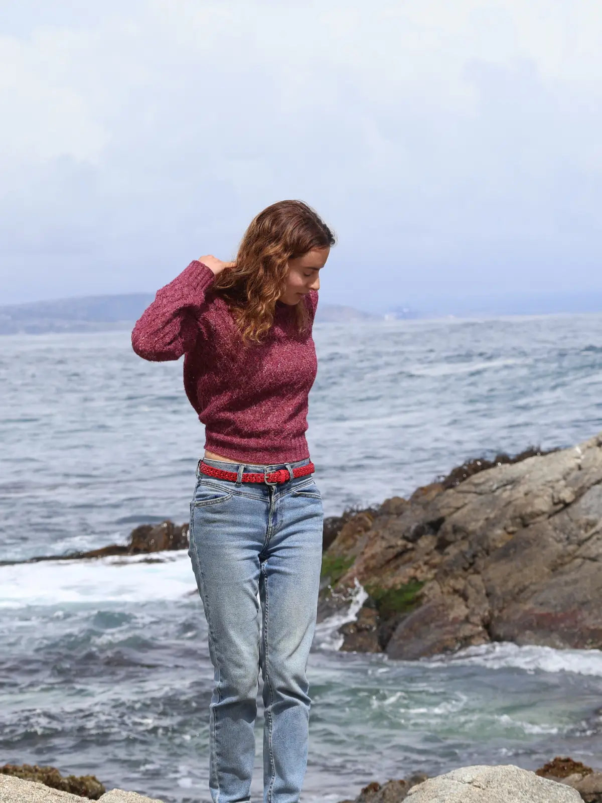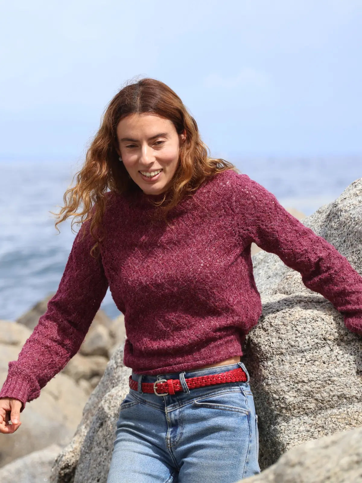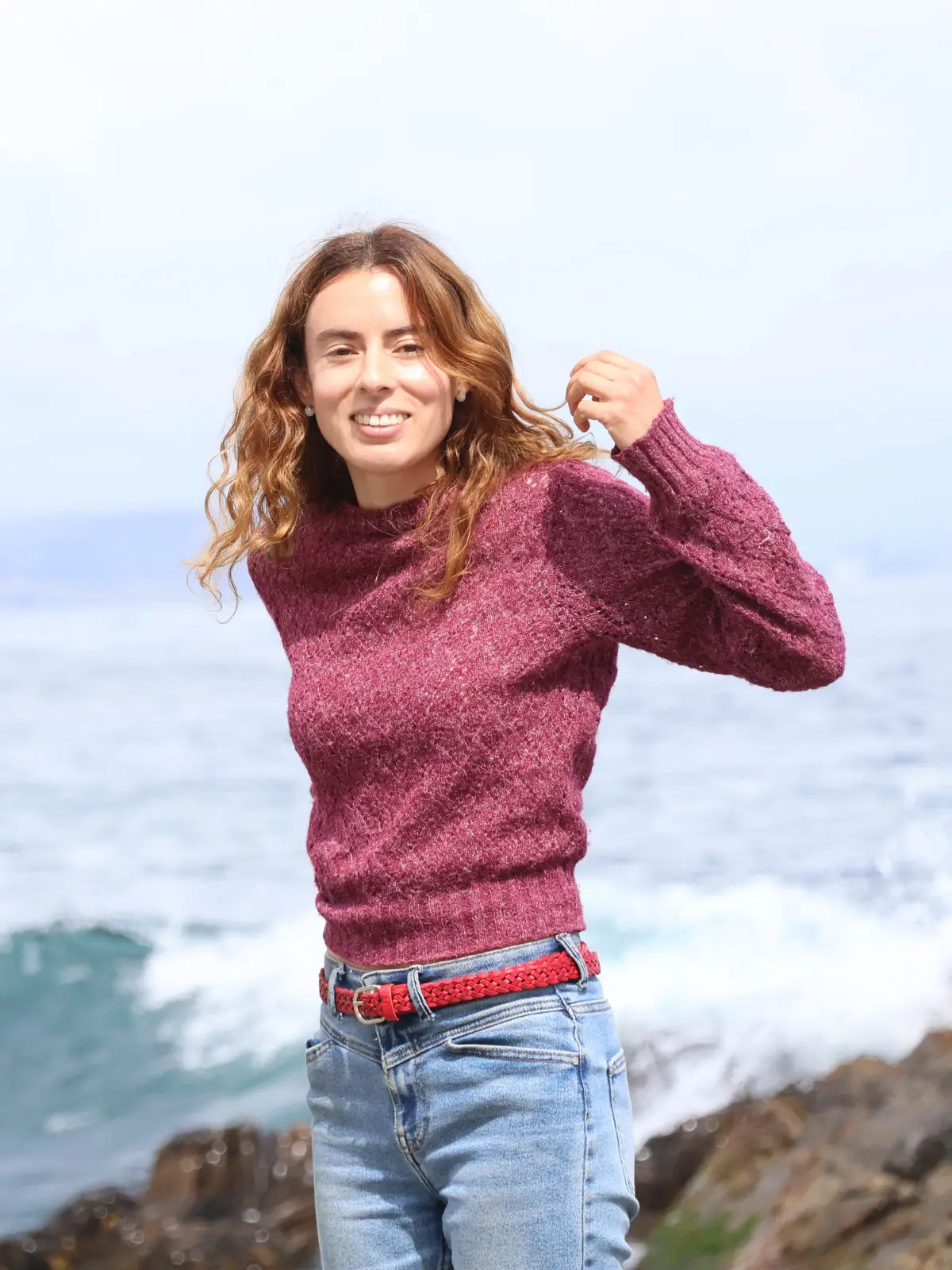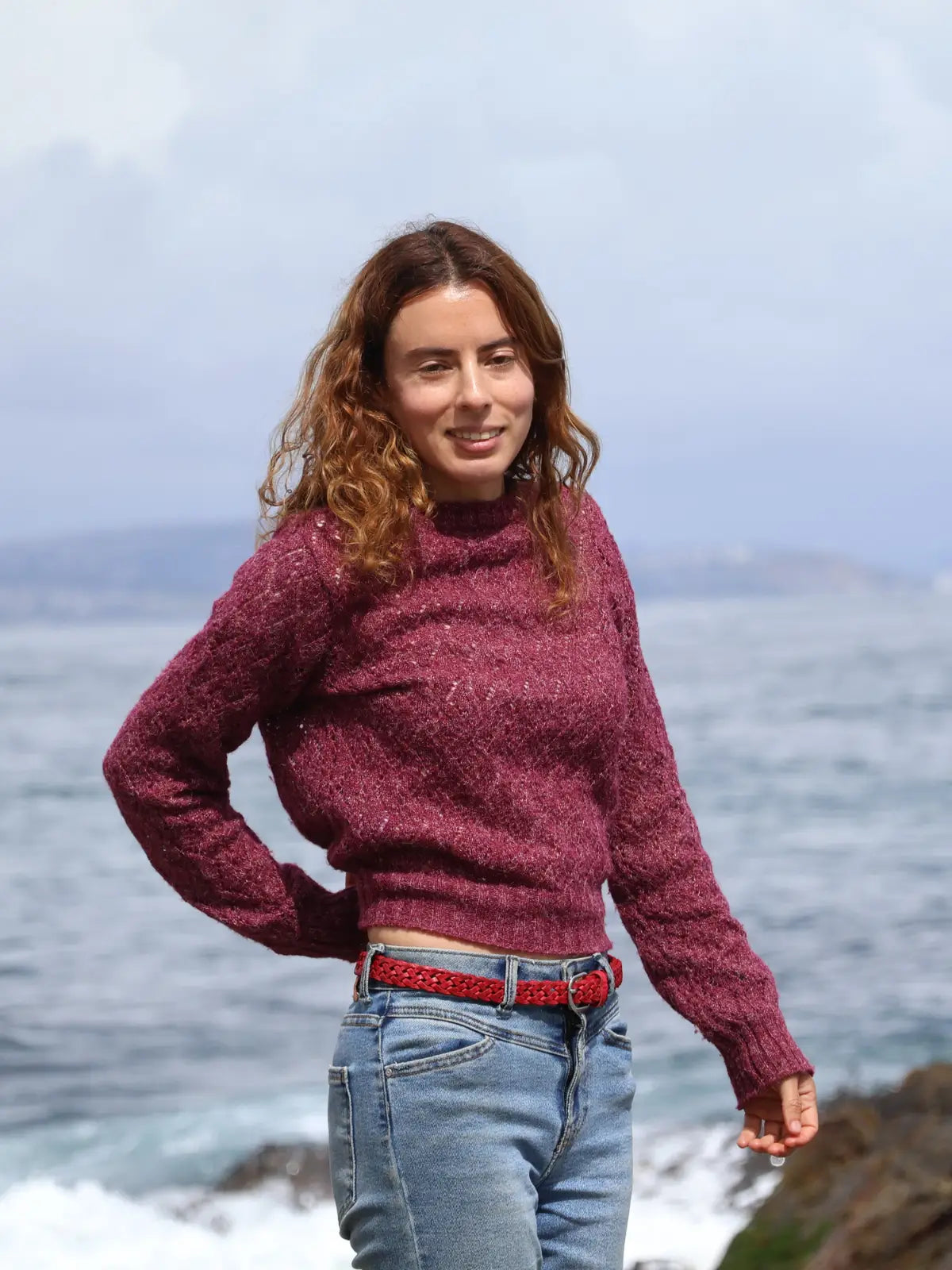Cinturón de cuero natural trenzado color rojo